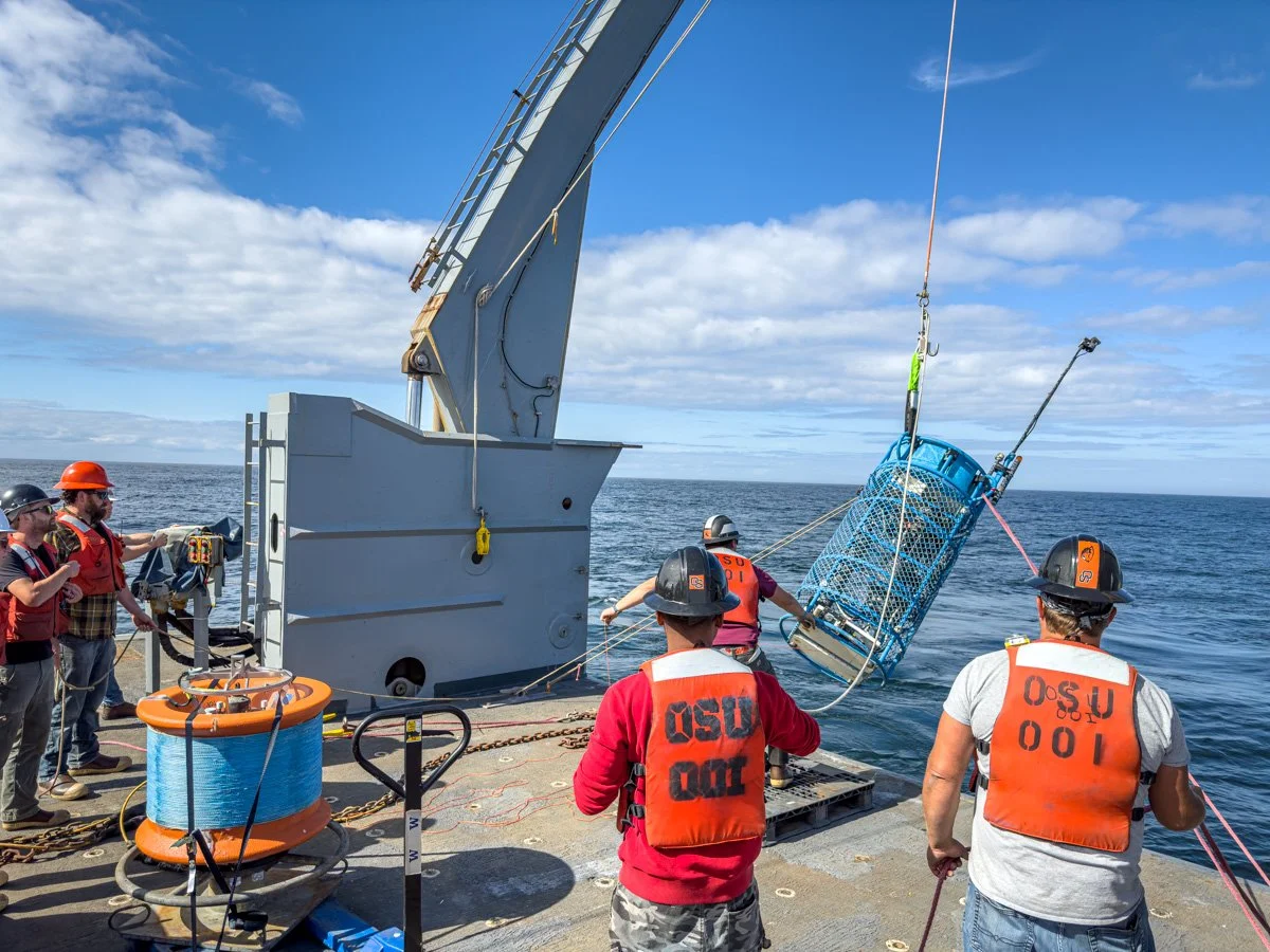 The first recovery operation was to deploy a mooring and buoy onto the Washington shelf at a depth of 87 meters. The process requires a huge amount of coordination and planning and feels like a complex dance as different pieces of equipment are moved around the deck and eventually placed carefully and purposefully into the water.